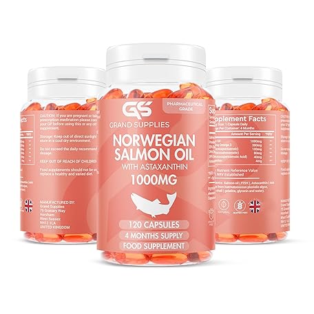 Sản phẩm Norwegian Salmon Oil with Astaxanthin 1000mg - 4 Months / 120 Days Supply - Pink Peptide Omega 3 6 9 Capsules High Strength - Rich in EPA, DHA & DPA, Burpless Taste đang được bán với giá ưu đãi là $27.468 tại nước Anh.