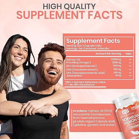 Thông tin sản phẩm Norwegian Salmon Oil with Astaxanthin 1000mg - 4 Months / 120 Days Supply - Pink Peptide Omega 3 6 9 Capsules High Strength - Rich in EPA, DHA & DPA, Burpless Taste
