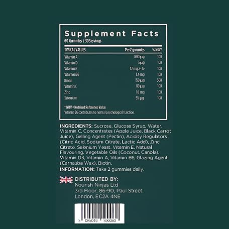 Sản phẩm Nourish Ninjas Hair Skin and Nails Gummies – 60 Count Strawberry Flavoured Biotin Supplement Gummy Vitamins – Hair Skin and Nails Vitamin Gummies with Selenium – Vegan Non-GMO No Gluten đang được bán với giá ưu đãi là $10.3005 tại nước Anh.