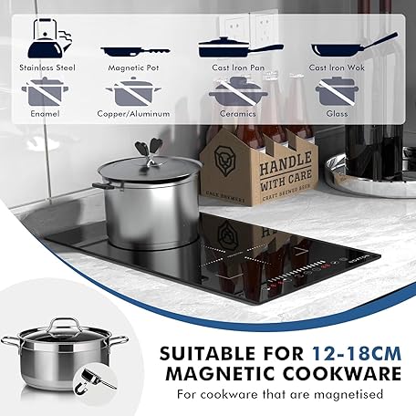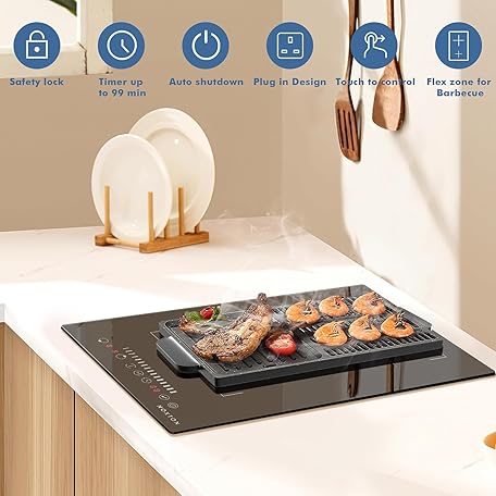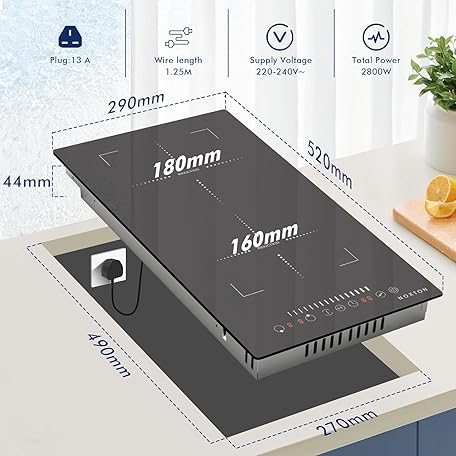 Thông tin sản phẩm Noxton Plug in Induction Hob 2 Zone, 30cm Electric Hob Flex Zone for Barbecue Pan, 2800W Induction Hobs with Slider Touch Control 220-240V