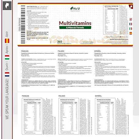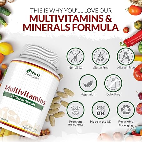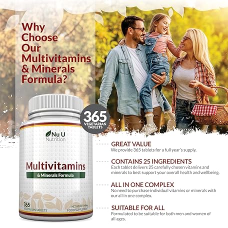 Thông tin sản phẩm Nu U Nutrition - A-Z Multivitamin Tablets for Men & Women - 365 Tablets - 12 Month Supply - 25 Essential Multivitamins & Minerals Including Iron, Zinc & Vitamin D - One a Day - Made in The UK