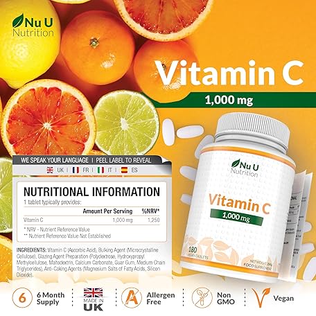 Sản phẩm Nu U Nutrition - Vitamin C 1000mg - 180 Vegan Tablets - 6 Month Supply - High Strength Ascorbic Acid - Supports Immune System, Energy & Collagen Formation* (EFSA) - Made in The UK đang được bán với giá ưu đãi là $21.7346 tại nước Anh.