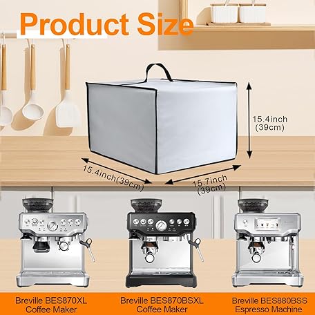 • NUENSS-ROR Coffee Maker Cover for Breville BES870XL Espresso Machine, Breville Barista Touch BES880BSS and Breville BES870BSXL Espresso Machine Heavy Duty Thickened Waterproof Dustproof Cover(Silver)