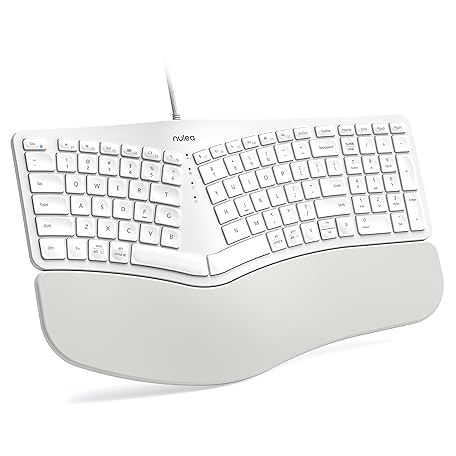 Nulea RT05C Wired Ergonomic Keyboard, Split Keyboard with Cushioned Wrist Rest, Adjustable Tilt Legs, Plug and Play, USB Corded, Compatible with Windows/Mac-White