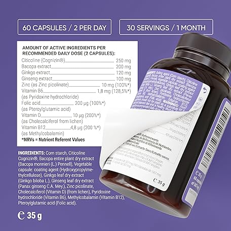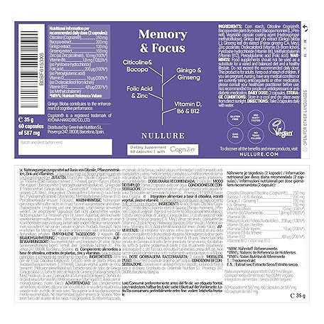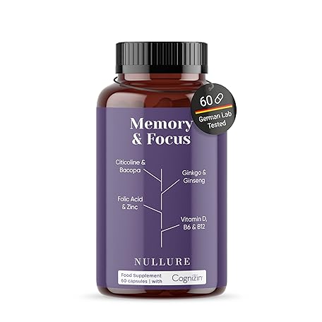 Sản phẩm Nullure Memory & Focus | Nootropic Brain Supplement | Concentration · Energy · Focus | Citicolin COGNIZIN + Ginkgo Biloba 6000mg + Bacopa Monnieri + Ginseng | Caffeine Free | 60 Capsules đang được bán với giá ưu đãi là $41.7906 tại nước Anh.