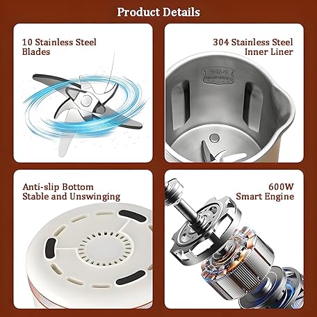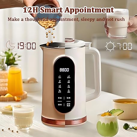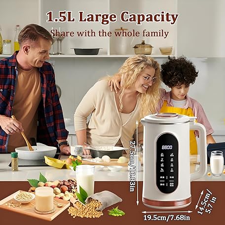 Thông tin sản phẩm Nut Milk Maker Automatic, 1.5L Soy Milk Maker With 10-leaf Blades, 12h Timer & Keep Warm, Stainless Steel Plant Milk Maker With Smart Display For Soybean, Almond And Vegan Milks