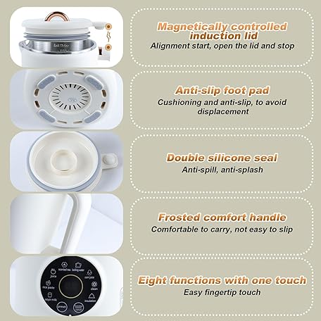 Thông tin sản phẩm Nut Milk Maker Machine, 1L Soy Milk Maker, 8 in 1 Oat Milk Maker with LED Display,Milky Plant Machine with Timer/auto-Clean/Filter Free/Keep Warm,for Homemade Soy Almond Plant Oat Milks,Porridges