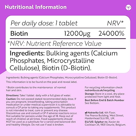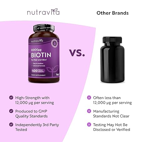 Thông tin sản phẩm Nutravita Biotin Hair Growth Supplement 12,000mcg – 400 Vegan Tablets (13+ Month Supply) High Strength Vitamin B7 12000UG - Supports Skin & Hair Growth – High Absorption Biotin Pills for Women & Men