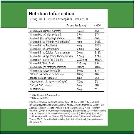 Thông tin sản phẩm Nutri-Align Hair Defence Biotin Complex | 90 Capsules - High Strength Biotin Hair Vitamins for Hair Loss | Hair Growth Biotin Supplements - 2500mcg Biotin per Capsule | Vitamin A, Folic Acid & Calcium