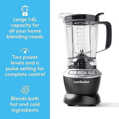 Thông tin sản phẩm nutribullet Hot and Cold Blender - Full Size 1.6L Jug Blender - Includes Powerful 1000W Base, Pitcher Lip & Vented Lid Cap, Pusher & 1.6L Blender Pitcher - Blends Frozen Fruit, Ice, Nuts & Vegetables