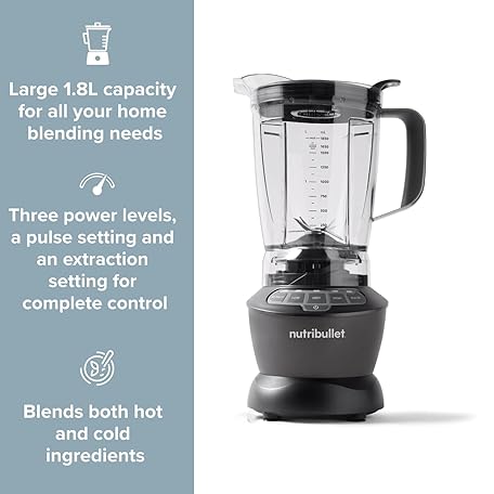 Thông tin sản phẩm NutriBullet Hot & Cold Blender Combo - Charcoal Grey - 3 Pre-Programmed Smart Cycles & 2 Pulse & Extract Functions - Blend Fruit, Ice & Nuts - 1.8L Capacity - 1200W Base with 3 Cups & 2 Flip-Top Lids