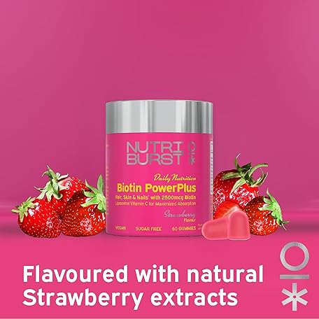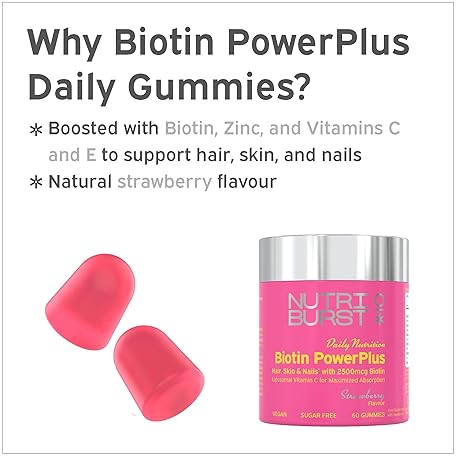 Sản phẩm Nutriburst Biotin Power Plus - Biotin (2500mcg) + Liposomal Vitamin C for Healthy Hair & Glowing Skin - Strawberry Flavour - 60 Gummies 1 Month Supply - Suitable for Vegans đang được bán với giá ưu đãi là $10.3441 tại nước Anh.