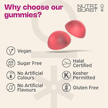Thông tin sản phẩm Nutriburst Vegan Collagen Revive Gummies - Biotin (100µg), Hyaluronic Acid (100mg) + Vitamin C (80mg) - Support Natural Collagen Production, Healthy Hair, Nails & Bones - 60 Gummies 1 Month Supply