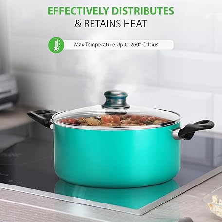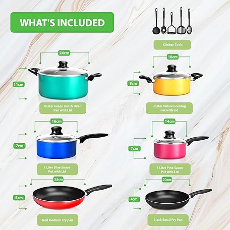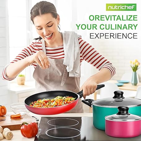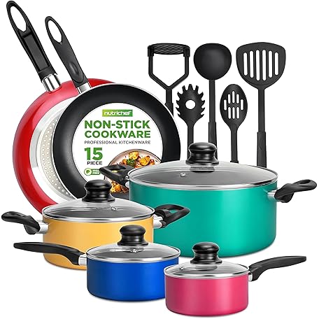 Thông tin sản phẩm NutriChef, 15 Piece Pots and Pans Set - Non-Stick Cookware Set, Induction Hob Cookware Set, Premium Cooking Set w/ Lids, Heat Resistant, Saucepot, Frying Pans, Oven Pot, Lids, Colorful