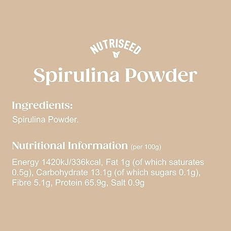 Sản phẩm Nutriseed Spirulina Powder 500g - 100% Spirulina Powder, Rich in Antioxidants & Vitamins B, C, A & E, Source of Plant Based Protein, Contains All Essential Amino Acids, Vegan Friendly & Gluten Free đang được bán với giá ưu đãi là $14.5297 tại nước Anh.