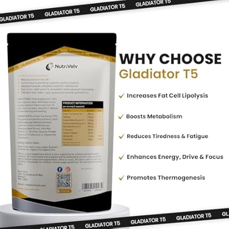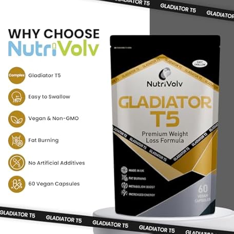 Sản phẩm NutriVolv Gladiator T5 Maximum Strength Weight Loss Pills That Work Fast, Keto Shred Fat Burning Pills wit Kola Nut, Green Tea, Acai Berry & Caffeine | Thermogenic | 60 Capsules đang được bán với giá ưu đãi là $8.7091 tại nước Anh.
