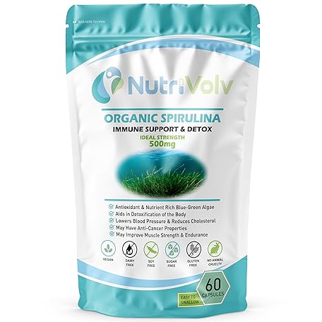 Sản phẩm Nutrivolv Organic Spirulina 500mg Capsules | Natural Protein Source | Dietary Supplement | Immune Health | Natural Detoxifier | Antioxidant | Metabolism | Vegan | 60 Capsules đang được bán với giá ưu đãi là $5.7116 tại nước Anh.