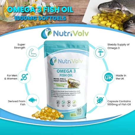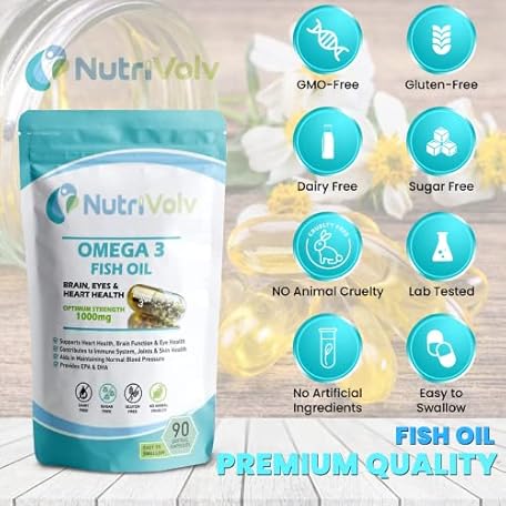 Sản phẩm NutriVolv Ultra Purified Omega 3 Fish Oil Capsules With Essential Fatty Acids EPA & DHA Supports Heart, Eye & Brain Health | 90 Softgel Capsules đang được bán với giá ưu đãi là $8.5565 tại nước Anh.