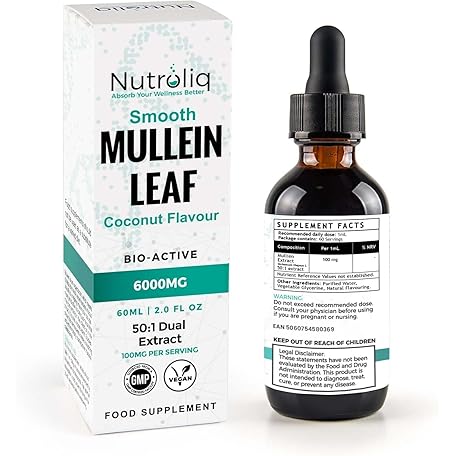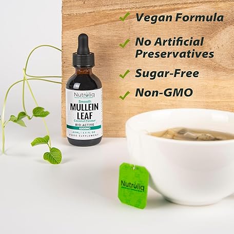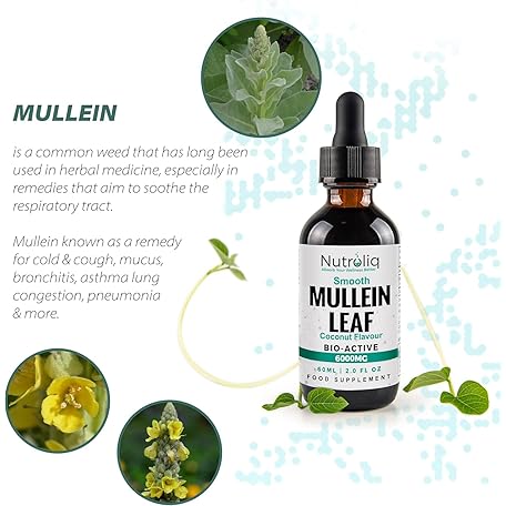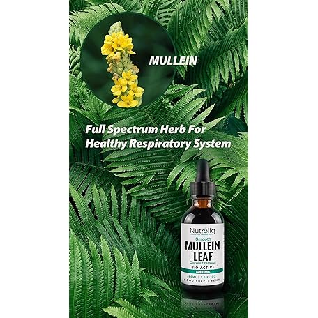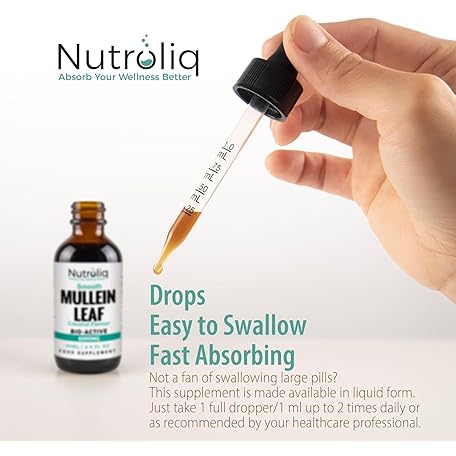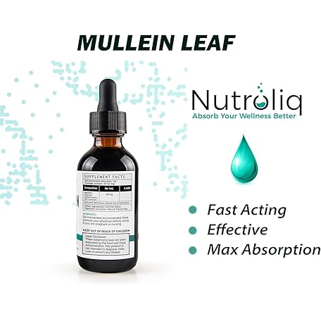 Thông tin sản phẩm Nutroliq Mullein Leaf 50:1 Extract Drops - Vegan, Non-GMO Supplements for Lung Cleanse and Respiratory Health, Digestive Wellness, Sound Sleep Support - Fast Absorption Tincture - 60ml, 2 Month Supply