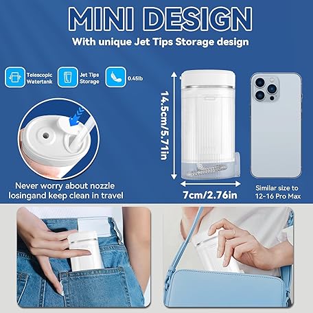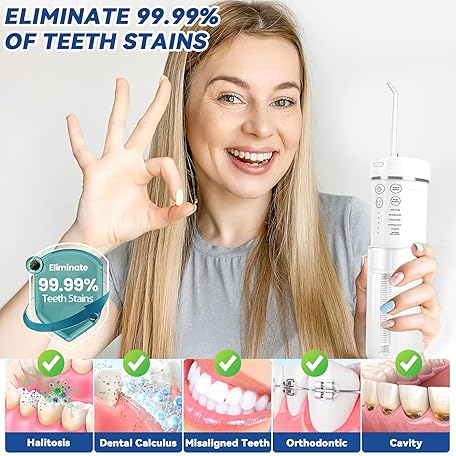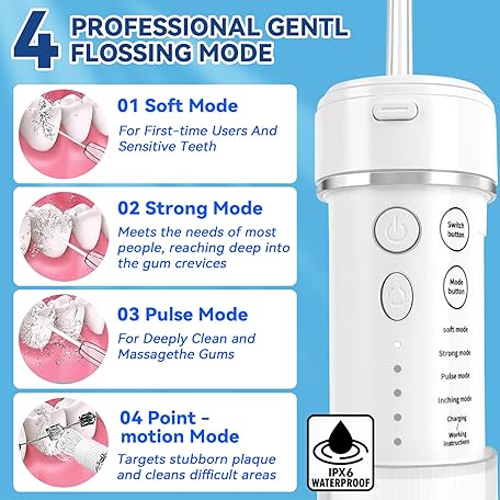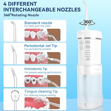 Thông tin sản phẩm NXPZ Dental Irrigator Wireless, Professional Oral Hydropulsor, 4 Cleaning Modes + 4 Replaceable Nozzles, USB Charging, Compact for Travel/Home