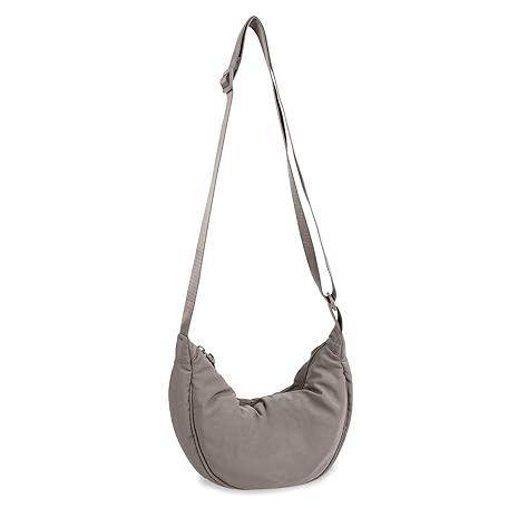 Nylon Crescent Crossbody Bag for Women Purses Trendy Men,Small Travel Sling Bag Hobo,Lightweight Fanny Pack with Zipper Adjustable Strap,Round Soft Shoulder Pouch Bag for Everyday Use Sport(Grey
