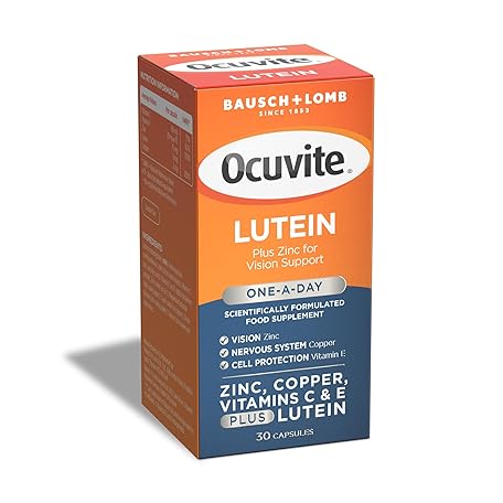 Sản phẩm Ocuvite Lutein Supplement, by Bausch + Lomb, Lutein with Zinc, Copper, Vitamin C and E, One Capsule per Day đang được bán với giá ưu đãi là $12.7966 tại nước Anh.