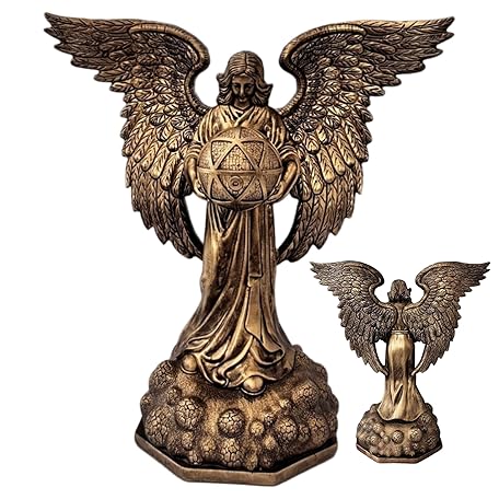 Odoukey Small Metatron Goddess Statue, Veronese Design Sacred Geometry Decor with Metatron Cube Bronze Resin Artifact