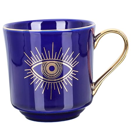 OFFSCH Hand-Painted Turkish Ceramic Coffee Cup Evil Eye Design Porcelain Mug for Juice Milk and Hot Drinks Simple Practical Breakfast Drinkware
