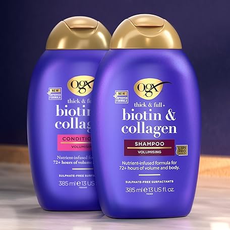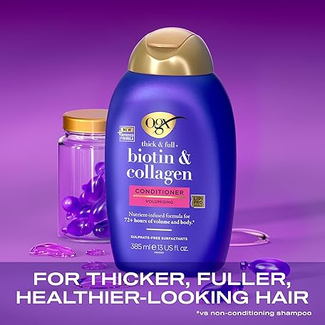 Thông tin sản phẩm OGX Biotin and Collagen Volumising Hair Conditioner, Thick and Full, with Vitamin B7 Biotin, and Collagen, for Thin Hair, Sulfate Free Surfactants, 385ml, packaging may vary