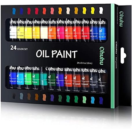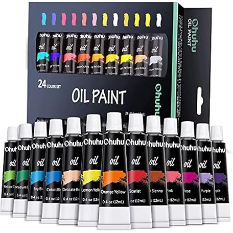 Thông tin sản phẩm Ohuhu Oil Paints for Artists, 24 Colours x 12ml Tubes Oil Paint Set - Rich Pigment & Non-Toxic, Creamy Texture on Paper Canvas Wood Ceramic Fabric, Ideal for Wall Art, Landscape & Portrait Painting
