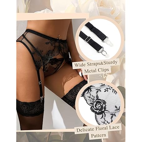 Sản phẩm ohyeahlady Women Adjustable Suspender Belt Embroidered Lace Garter Belts Plus Size Mesh Lingerie Set with 4 Metal Clips for Thigh High Stockings(G-String Included) đang được bán với giá ưu đãi là $17.4727 tại nước Anh.