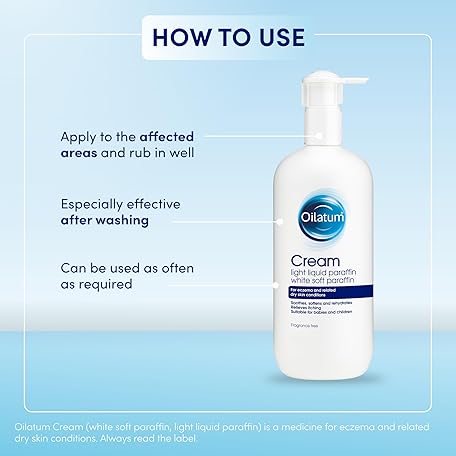Thông tin sản phẩm Oilatum Emollient Cream for Eczema, Psoriasis and Dry Skin Conditions, Soothing Formula for Sensitive Skin, Hydrating Relief for Itchy, Irritated Skin, Dermatologist Recommended, 1 x 500ml