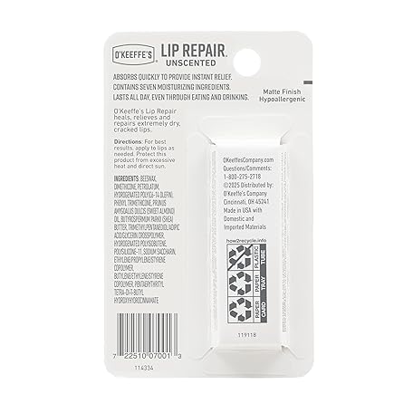Thông tin sản phẩm O'Keeffe's Lip Repair Unscented Lip Balm, 4.2g – For Extremely Dry, Cracked Lips | All-Day Moisture with 7 Moisturising Ingredients