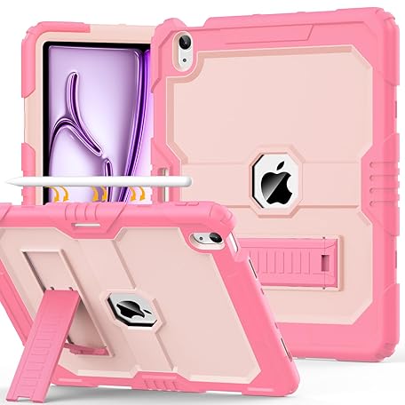 OKP Case for New iPad Air 13 inch M3 (2025), for iPad Air 13-inch M2 (2024), Heavy Duty Shockproof Rugged iPad Air 13'' Protective Cover with Pencil Holder & Built-in Stand, Pink+Light Pink