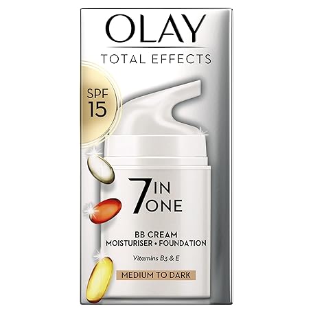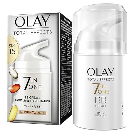 Thông tin sản phẩm Olay Total Effects SPF15 BB Day Face Cream, Medium to Dark 7-in-1 Skin Care Moisturiser Foundation with Vitamin C & Niacinamide Hydration, Glow and Anti-Wrinkle, Nourishes and Protects in 1 Step, 50ml