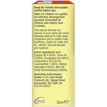Thông tin sản phẩm Olbas Oil For Children 12ml - Inhalant Decongestant Oil - Relief from Catarrh, Colds & Blocked Sinuses - For Children over 3 Months Old, 12 ml (Pack of 1)