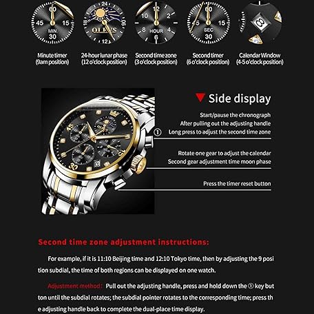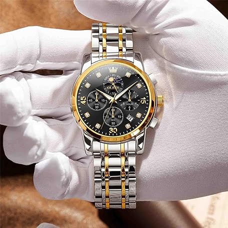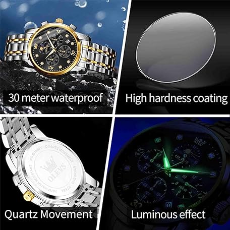 Thông tin sản phẩm OLEVS Men Multifunction Watch, Multi Dial Waterproof Luminous Chronograph Men's Watch with Date for Men,Stainless Steel Watches for Men,Moon Phase ?Luxury Watches