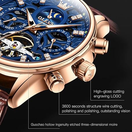 Thương hiệu OLEVS là cái tên nổi tiếng được rất nhiều khách hàng trên thế giới chọn lựa. Với kiểu dáng đẹp mắt, sang trọng, sản phẩm OLEVS Men Skeleton Watch Automatic Designer Luxury Mechanical Wrist Watches Brown Leather Dress Casual Moon Phase Luminous Waterproof là sự lựa chọn hoàn hảo nếu bạn đang tìm mua một món cho riêng mình.