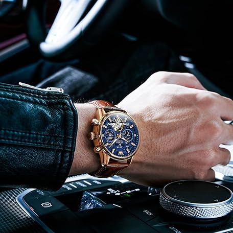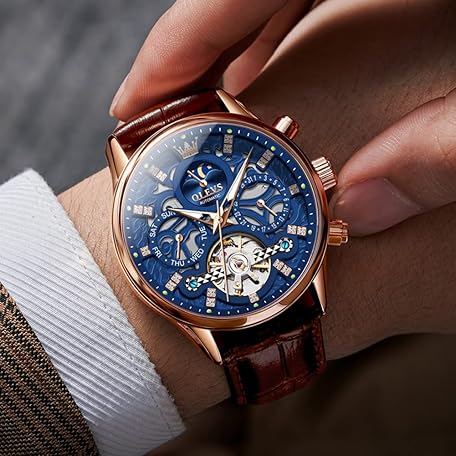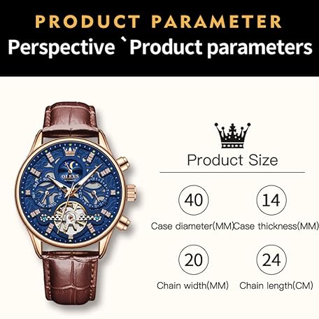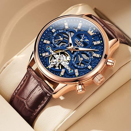 Sản phẩm OLEVS Men Skeleton Watch Automatic Designer Luxury Mechanical Wrist Watches Brown Leather Dress Casual Moon Phase Luminous Waterproof đang được bán với giá ưu đãi là $202.0206 tại nước Anh.