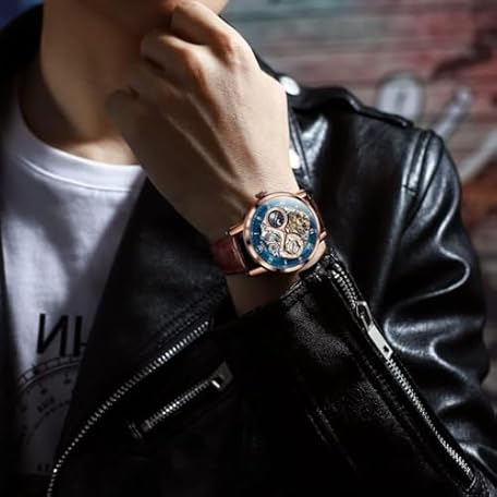 Sản phẩm OLEVS Men Skeleton Watch Automatic Winding Moon Phase Dress Luxury Leather Strap Waterproof Luminous Men Wrist Watch đang được bán với giá ưu đãi là $267.9765 tại nước Anh.