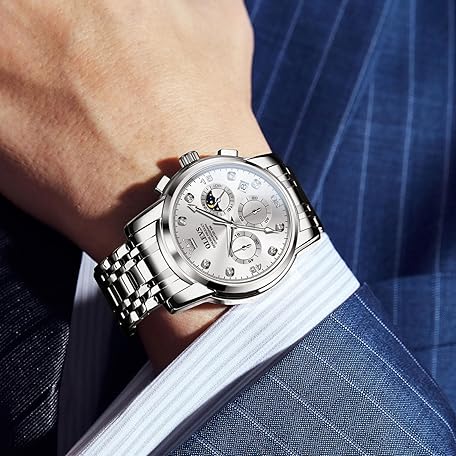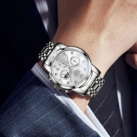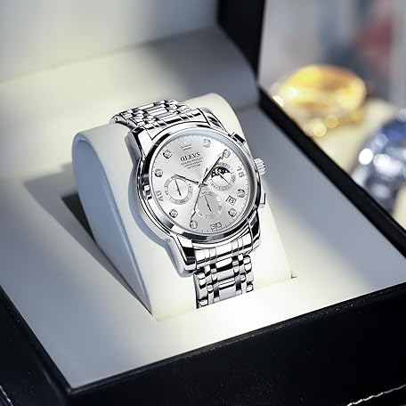 Sản phẩm OLEVS Men's Chronograph Watch, Gold Silver Stainless Steel Analog Quartz Watch, Waterproof Multi-Function Dial with Date Diamond Watches for Men đang được bán với giá ưu đãi là $64.9422 tại nước Anh.