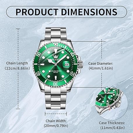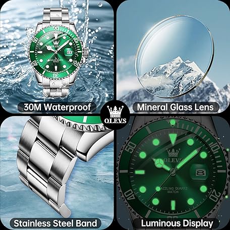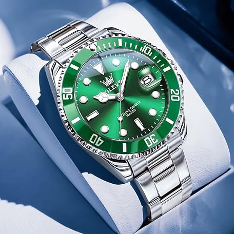 Thương hiệu OLEVS là cái tên nổi tiếng được rất nhiều khách hàng trên thế giới chọn lựa. Với kiểu dáng đẹp mắt, sang trọng, sản phẩm OLEVS Mens Watch Big Face Silver Stainless Steel Analogue Quartz Watches Men Green Dial Rotatable Bezel Calendar Men's Dress Watch Waterproof Luminous with Date Watches for Men Reloj para Hombre là sự lựa chọn hoàn hảo nếu bạn đang tìm mua một món cho riêng mình.