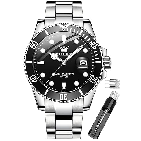 OLEVS Watch for Men Diamond Business Dress Analog Quartz Stainless Steel Waterproof Luminous Date Two Tone Luxury Casual Wrist Watch