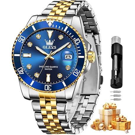 OLEVS Watch for Men Stainless Steel Quartz Business Dress Diamond Large Dial Waterproof Mens Watches with Date Wrist Watch