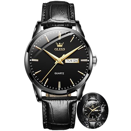 OLEVS Watches for Men Business Casual Analog Quartz Watch Black/Brown Leather Strap Luminous Waterproof Calendar Men Wrist Watch