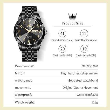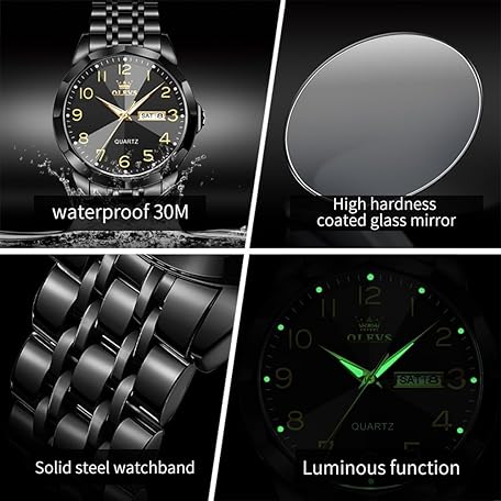 Sản phẩm OLEVS Watches for Men Stainless Steel Analog Quartz Waterproof Luminous Luxury Dress Date Diamond Business Casual Mens Wrist Watch(Gold/Blue/Black/White Dial) đang được bán với giá ưu đãi là $54.3365 tại nước Anh.