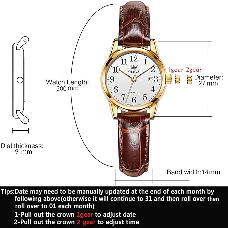 Sản phẩm OLEVS Women Leather Watch Analog Ladies Quartz Watches Luxury Dress Watch for Small Wrists Waterproof Watches for Women Date Day Watch Reloj para Mujer đang được bán với giá ưu đãi là $50.14 tại nước Anh.