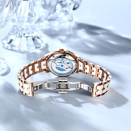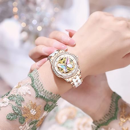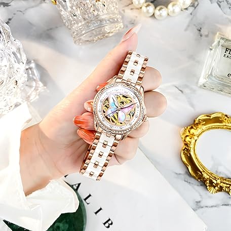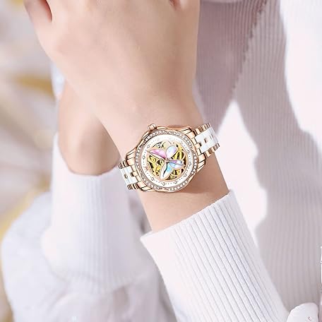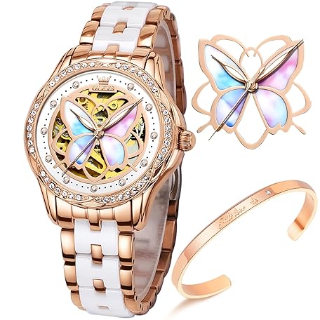 Sản phẩm OLEVS Women Watches Automatic Rose Gold Diamond Skeleton Luminous Elegant Colorful Butterfly Stainless Steel Ceramic Strap Butterfly Gift Set for Ladies đang được bán với giá ưu đãi là $155.3904 tại nước Anh.