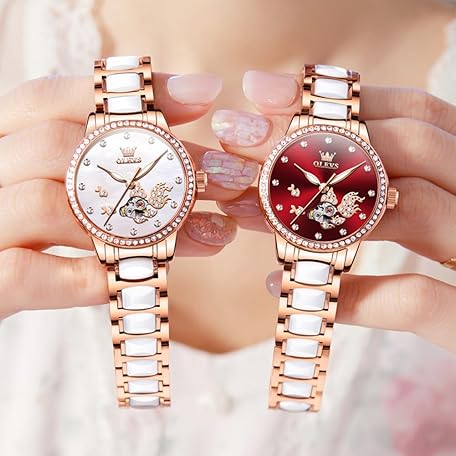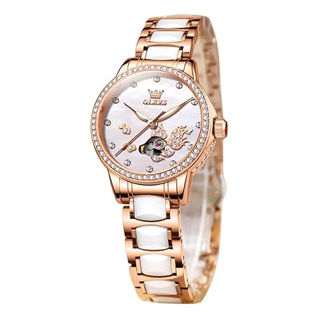 Sản phẩm OLEVS Women's Rose Gold Automatic Watches Skeleton Mechanical Self Winding Ladies Elegant Luxury Dress Butterfly Diamond White Ceramic Band Watch Gift đang được bán với giá ưu đãi là $153.0578 tại nước Anh.