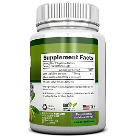 Thông tin sản phẩm Olive Leaf Extract - 750 Mg - 120 Capsules - Extra Strength - 20% Oleuropein - Non-GMO Formula - Premium Quality From Pure Olive Leaves - Powerful Antioxidant - Great for Heart, Skin and Immune System